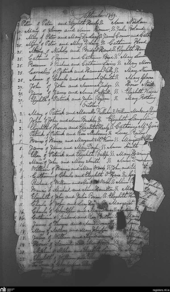 St. Michael and John's, Dublin city; County of Dublin; Archdiocese of Dublin. Baptisms, Sep. 1849 to Oct. 1849