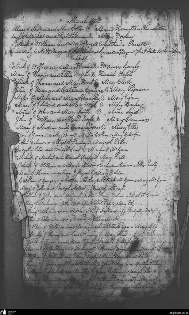St. Michael and John's, Dublin city; County of Dublin; Archdiocese of Dublin. Baptisms, Mar. 1850 to Apr. 1850