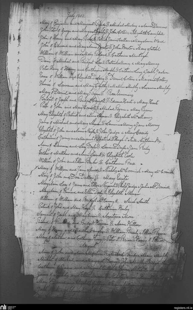 St. Michael and John's, Dublin city; County of Dublin; Archdiocese of Dublin. Baptisms, July 1850 to Aug. 1850