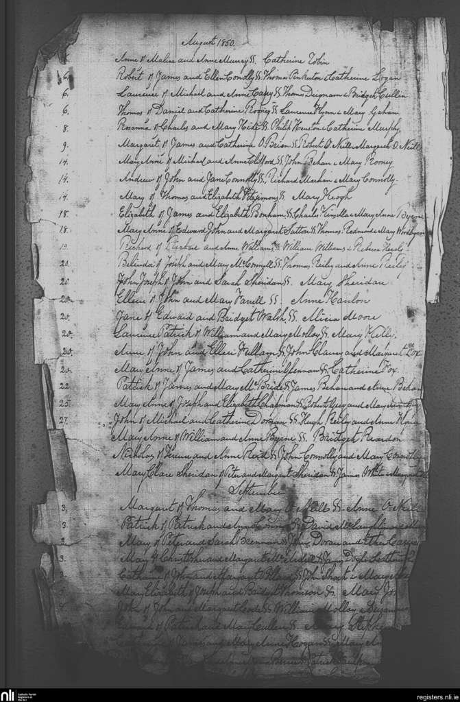 St. Michael and John's, Dublin city; County of Dublin; Archdiocese of Dublin. Baptisms, Aug. 1850 to Sep. 1850