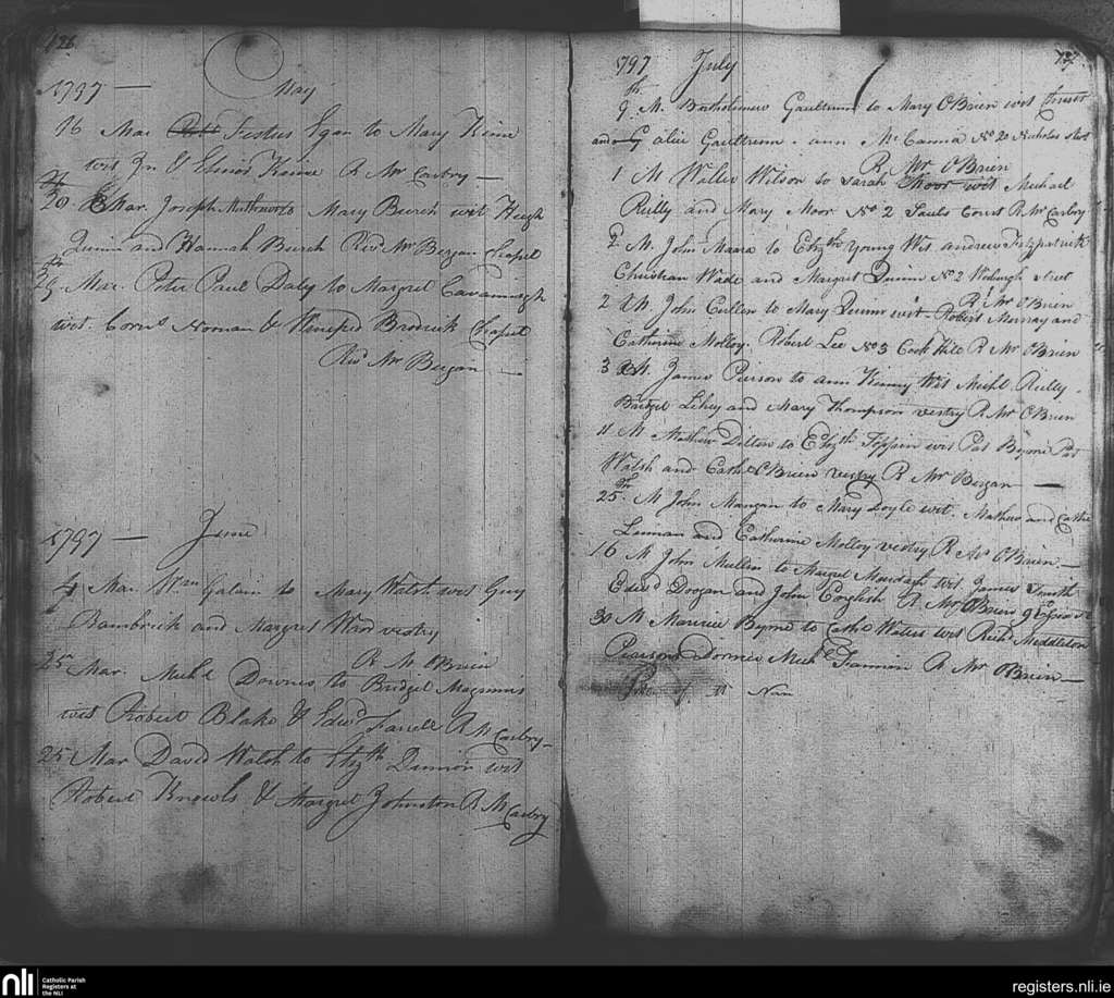 St. Michael and John's, Dublin city; County of Dublin; Archdiocese of Dublin. Marriages, May 1797 to July 1797