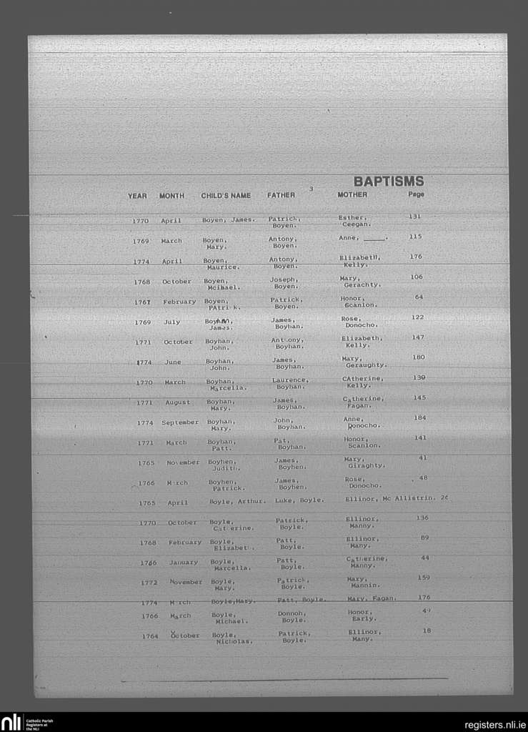 Mullingar; County of Westmeath; Diocese of Meath. Baptisms, Oct. 1764 to Sep. 1774