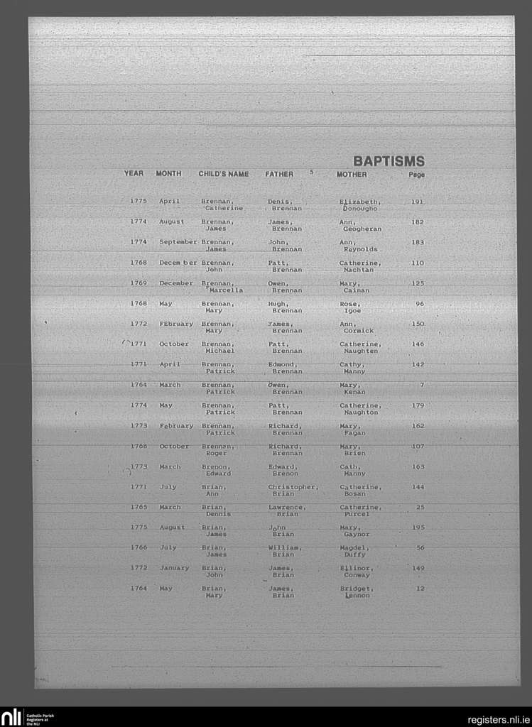 Mullingar; County of Westmeath; Diocese of Meath. Baptisms, Mar. 1764 to Aug. 1775
