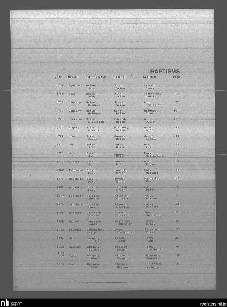 Mullingar; County of Westmeath; Diocese of Meath. Baptisms, Feb. 1764 to Aug. 1775