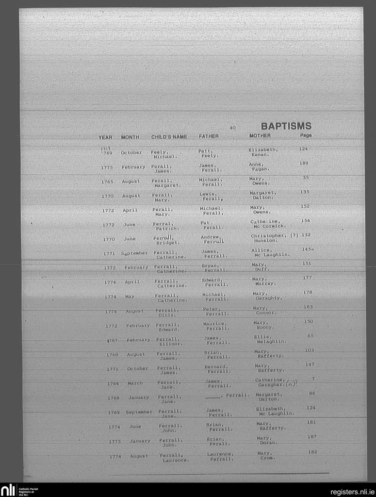Mullingar; County of Westmeath; Diocese of Meath. Baptisms, Mar. 1764 to Feb. 1775