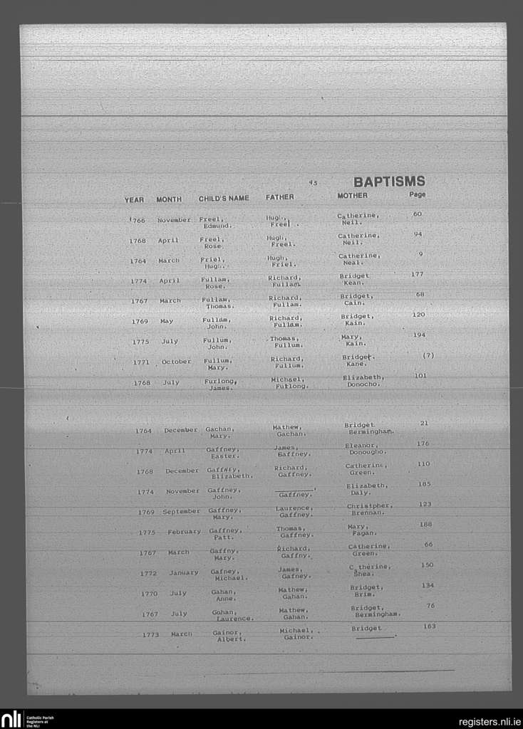 Mullingar; County of Westmeath; Diocese of Meath. Baptisms, Mar. 1764 to July 1775