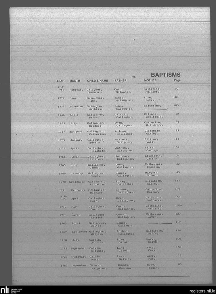 Mullingar; County of Westmeath; Diocese of Meath. Baptisms, Mar. 1765 to Nov. 1774