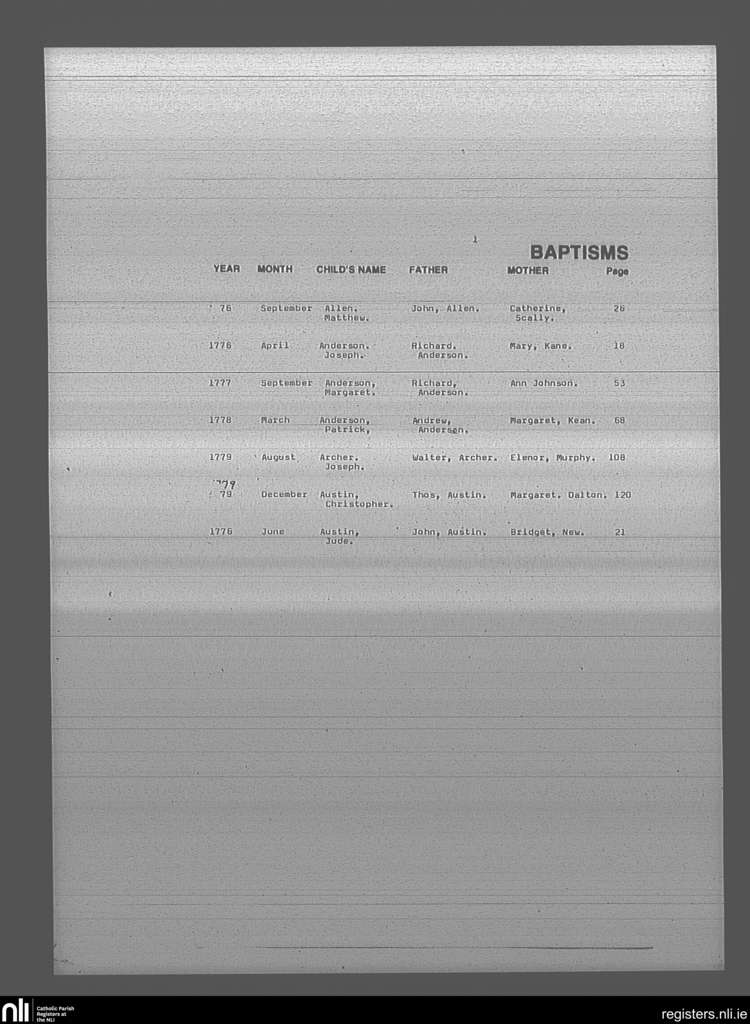 Mullingar; County of Westmeath; Diocese of Meath. Baptisms, Apr. 1776 to Dec. 1779