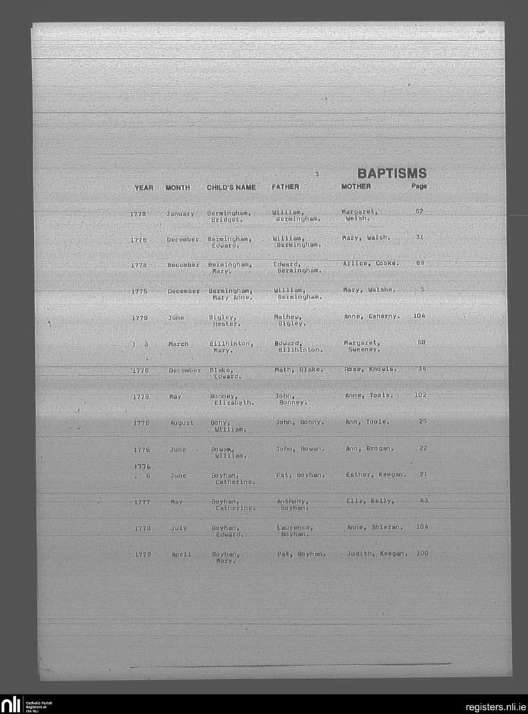 Mullingar; County of Westmeath; Diocese of Meath. Baptisms, Dec. 1775 to July 1779