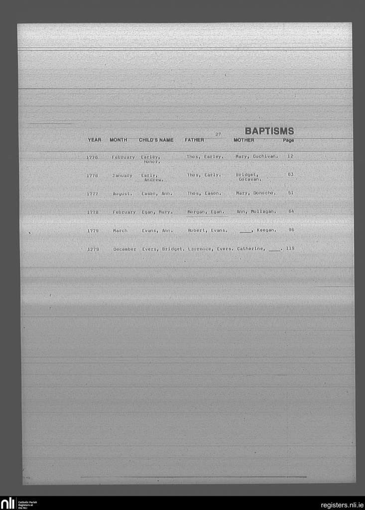 Mullingar; County of Westmeath; Diocese of Meath. Baptisms, Feb. 1776 to Dec. 1779