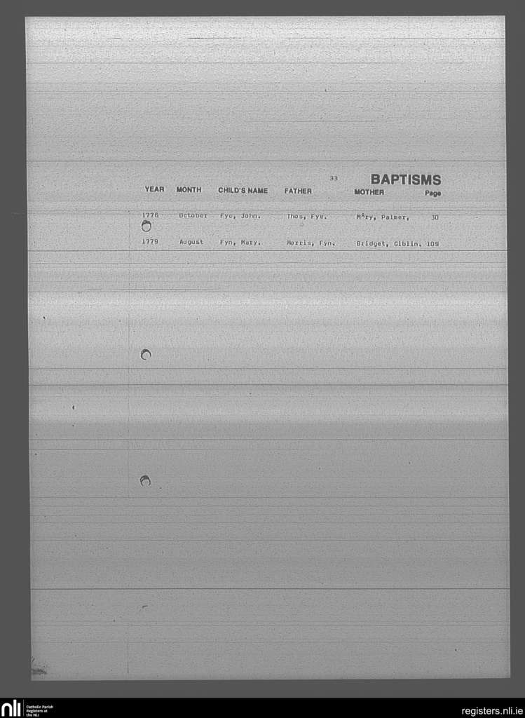 Mullingar; County of Westmeath; Diocese of Meath. Baptisms, Oct. 1776 to Aug. 1779