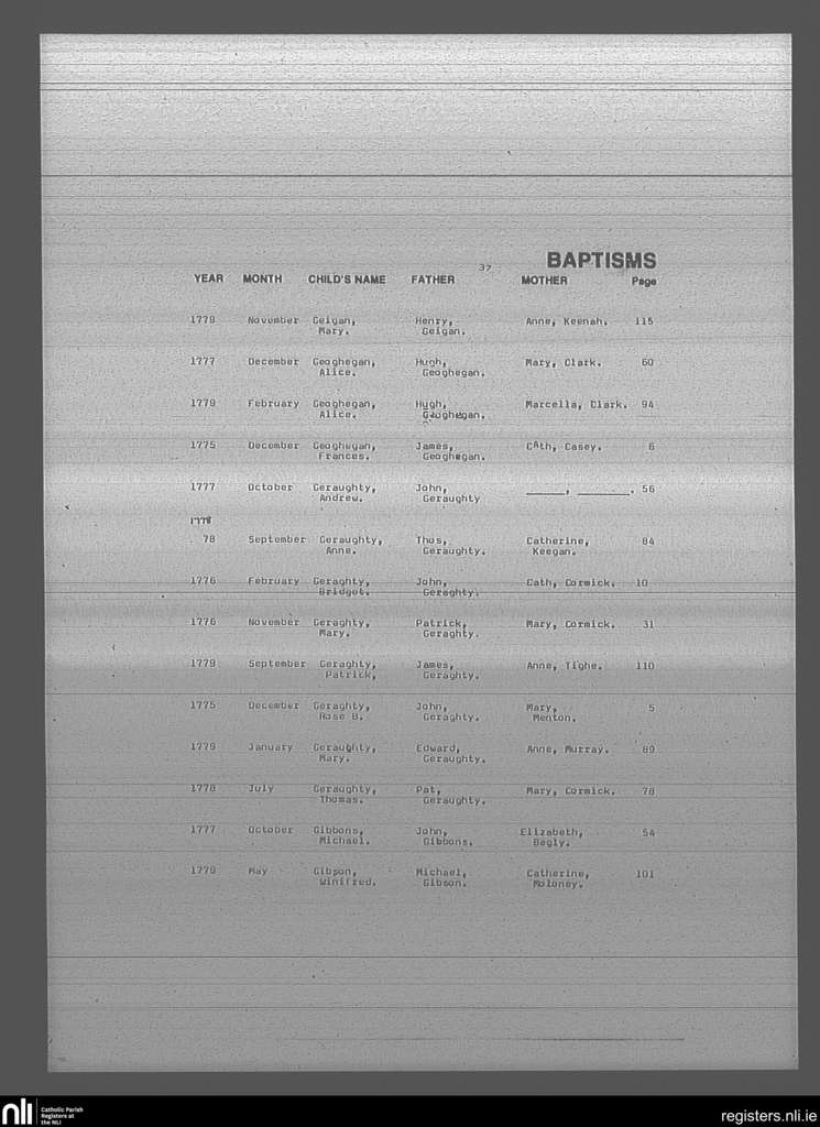 Mullingar; County of Westmeath; Diocese of Meath. Baptisms, Dec. 1775 to Nov. 1779