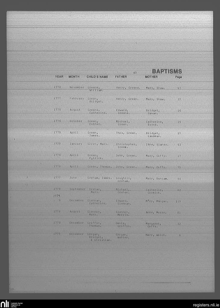 Mullingar; County of Westmeath; Diocese of Meath. Baptisms, Dec. 1775 to Dec. 1779