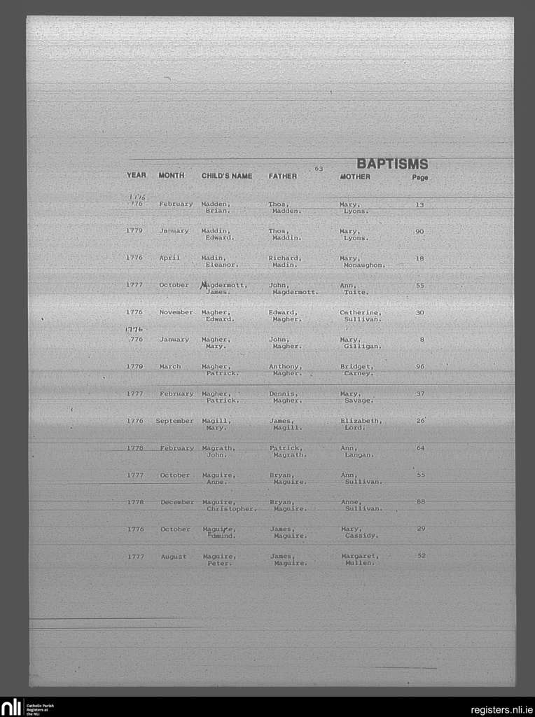 Mullingar; County of Westmeath; Diocese of Meath. Baptisms, Jan. 1776 to Mar. 1779