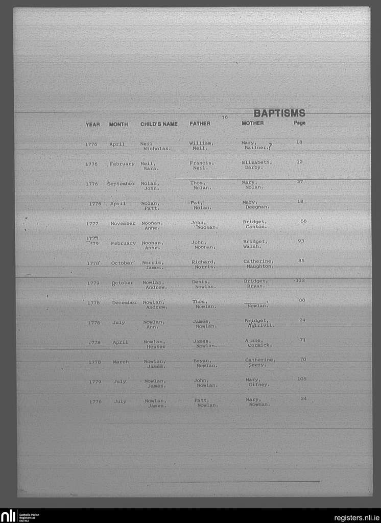 Mullingar; County of Westmeath; Diocese of Meath. Baptisms, Feb. 1776 to Oct. 1779