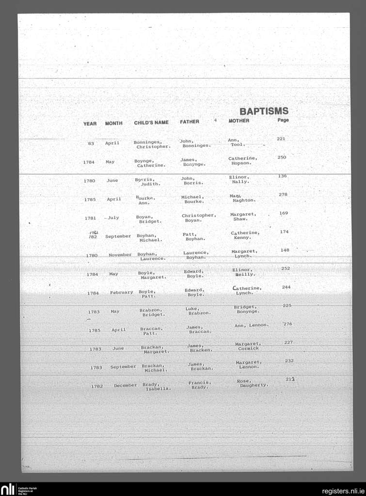 Mullingar; County of Westmeath; Diocese of Meath. Baptisms, June 1780 to Apr. 1785