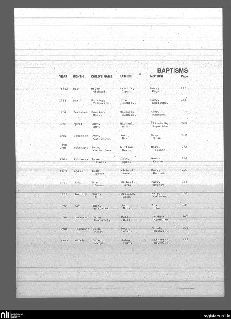 Mullingar; County of Westmeath; Diocese of Meath. Baptisms, Mar. 1780 to Feb. 1785