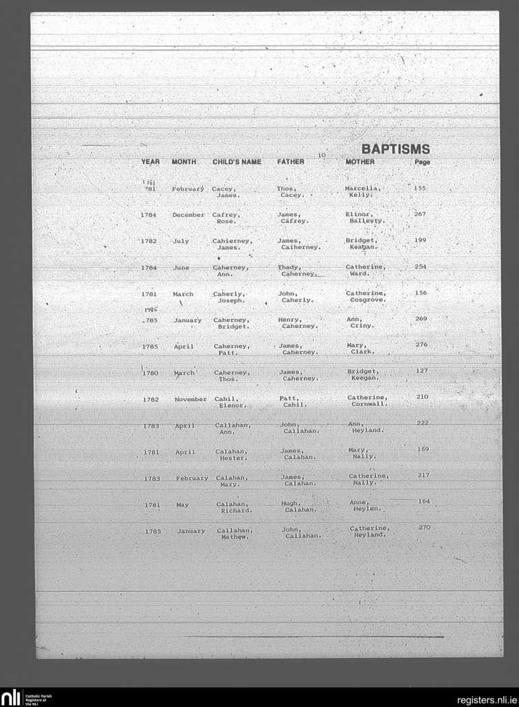 Mullingar; County of Westmeath; Diocese of Meath. Baptisms, Mar. 1780 to Apr. 1785