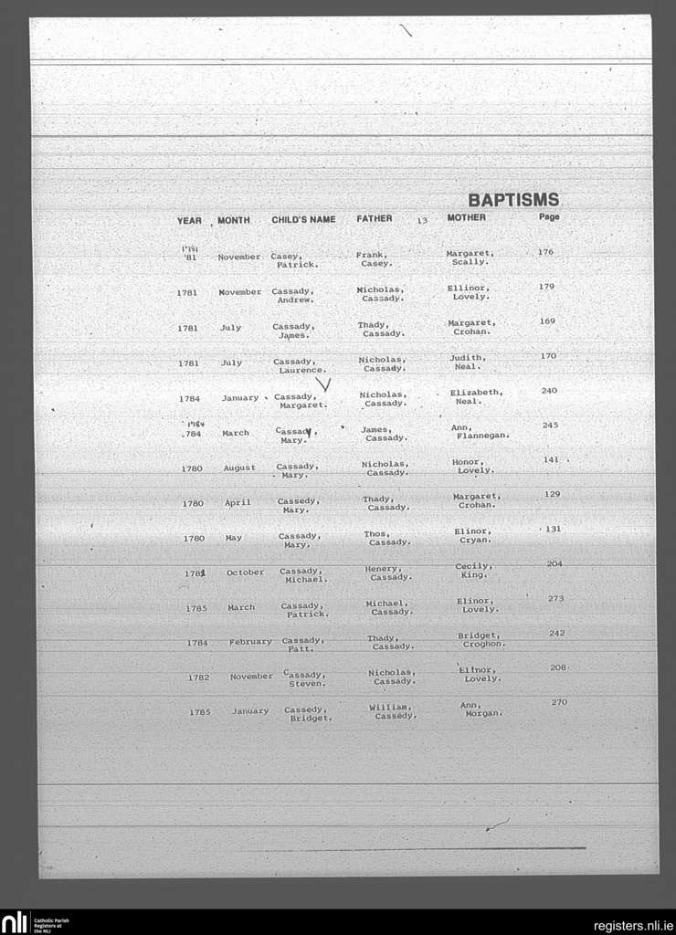 Mullingar; County of Westmeath; Diocese of Meath. Baptisms, Apr. 1780 to Mar. 1785