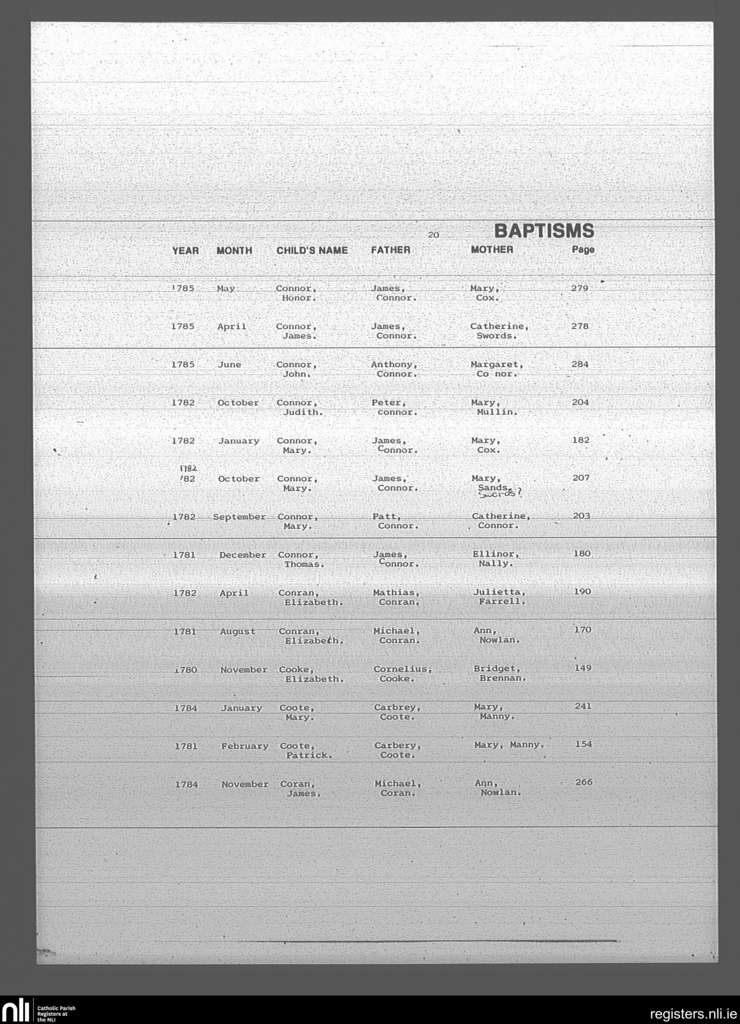 Mullingar; County of Westmeath; Diocese of Meath. Baptisms, Nov. 1780 to June 1785