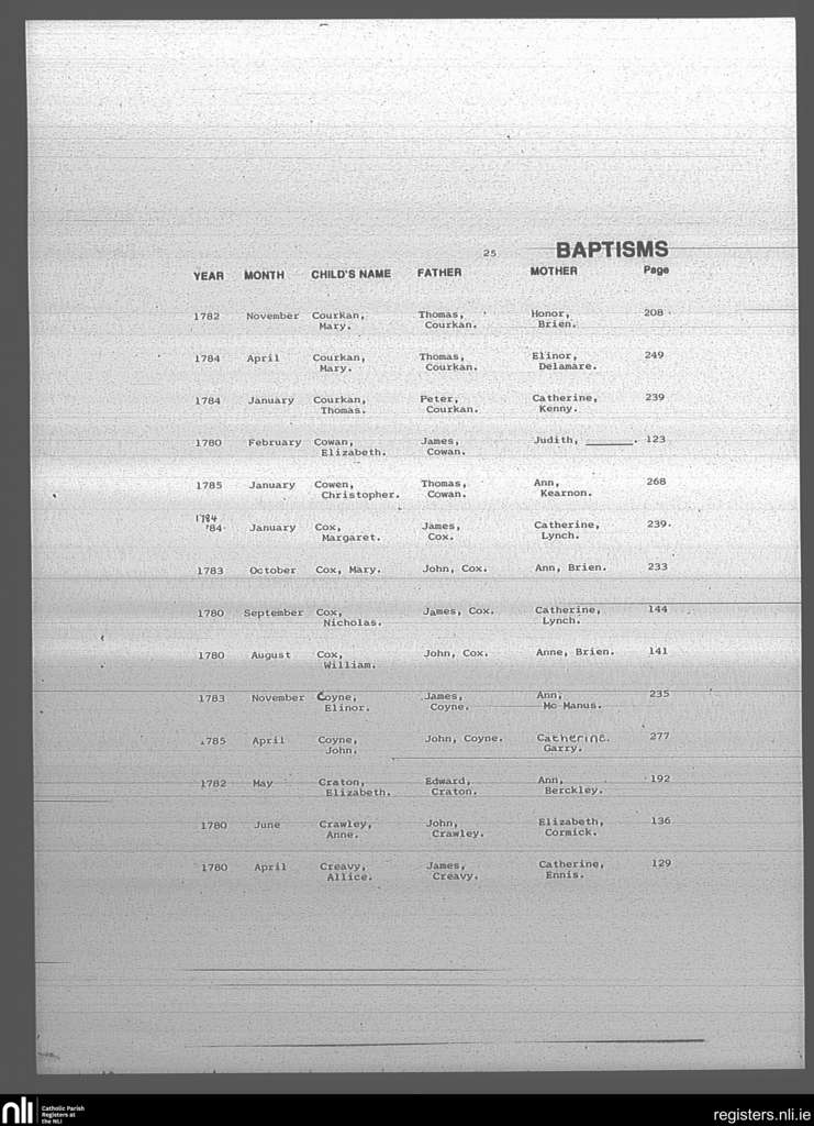 Mullingar; County of Westmeath; Diocese of Meath. Baptisms, Feb. 1780 to Apr. 1785