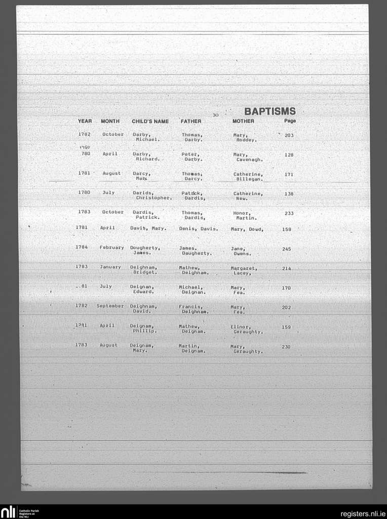 Mullingar; County of Westmeath; Diocese of Meath. Baptisms, Apr. 1780 to Feb. 1784