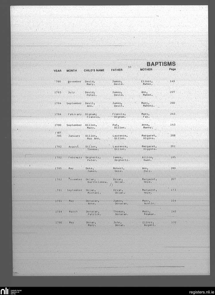 Mullingar; County of Westmeath; Diocese of Meath. Baptisms, May 1780 to May 1785