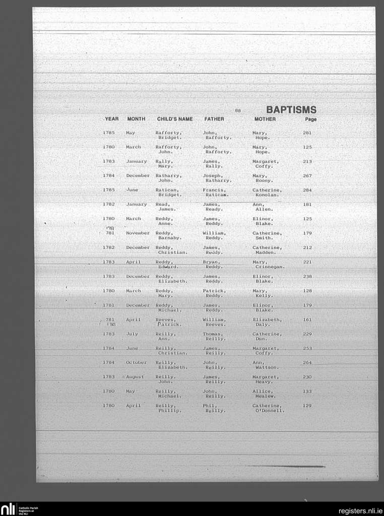Mullingar; County of Westmeath; Diocese of Meath. Baptisms, Mar. 1780 to June 1785
