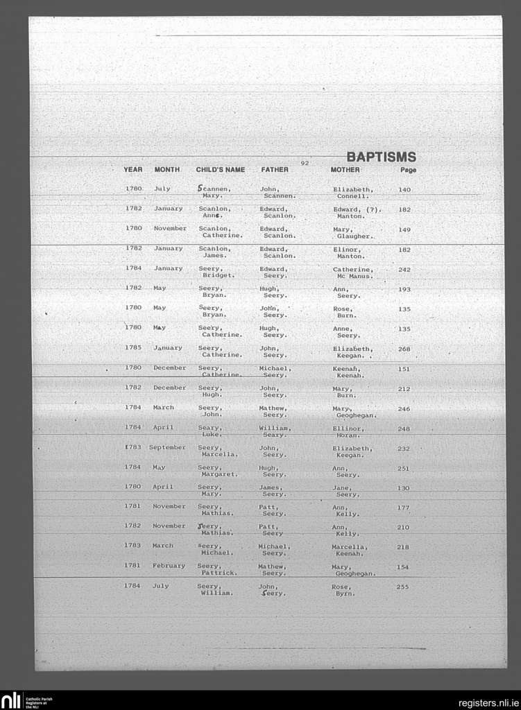Mullingar; County of Westmeath; Diocese of Meath. Baptisms, Apr. 1780 to Jan. 1785