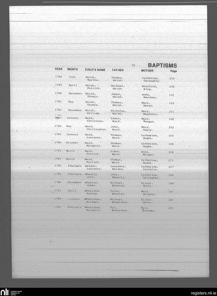 Mullingar; County of Westmeath; Diocese of Meath. Baptisms, Jan. 1780 to Apr. 1785