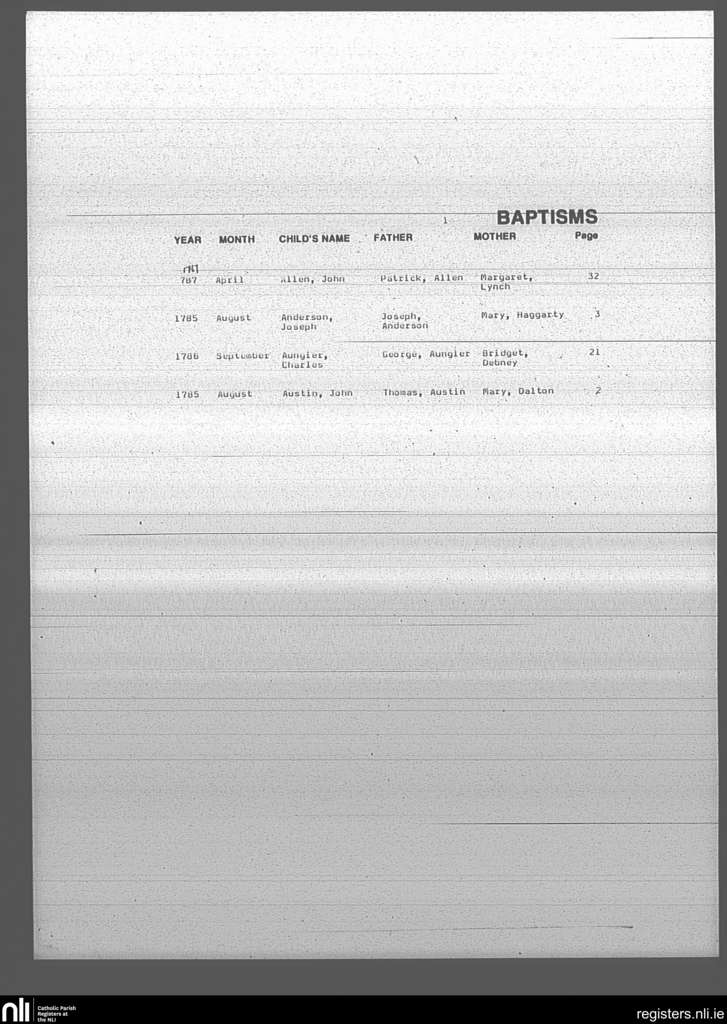 Mullingar; County of Westmeath; Diocese of Meath. Baptisms, Aug. 1785 to Apr. 1787