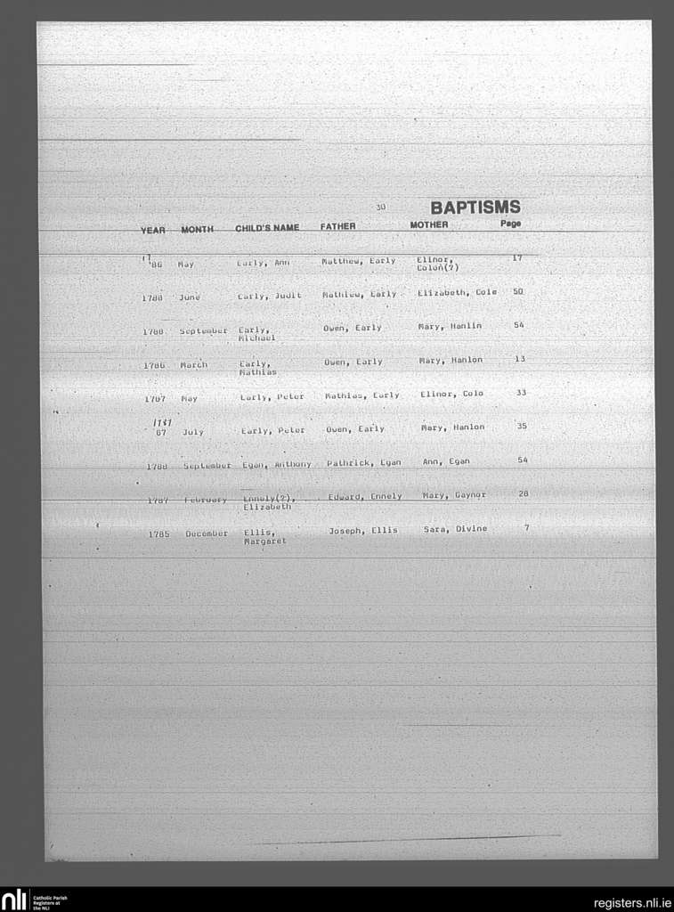 Mullingar; County of Westmeath; Diocese of Meath. Baptisms, Dec. 1785 to Sep. 1788