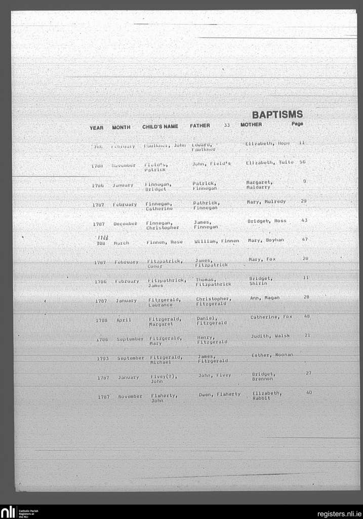 Mullingar; County of Westmeath; Diocese of Meath. Baptisms, Jan. 1786 to Sep. 1793