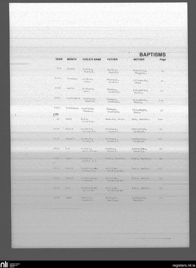 Mullingar; County of Westmeath; Diocese of Meath. Baptisms, Feb. 1789 to Sep. 1792
