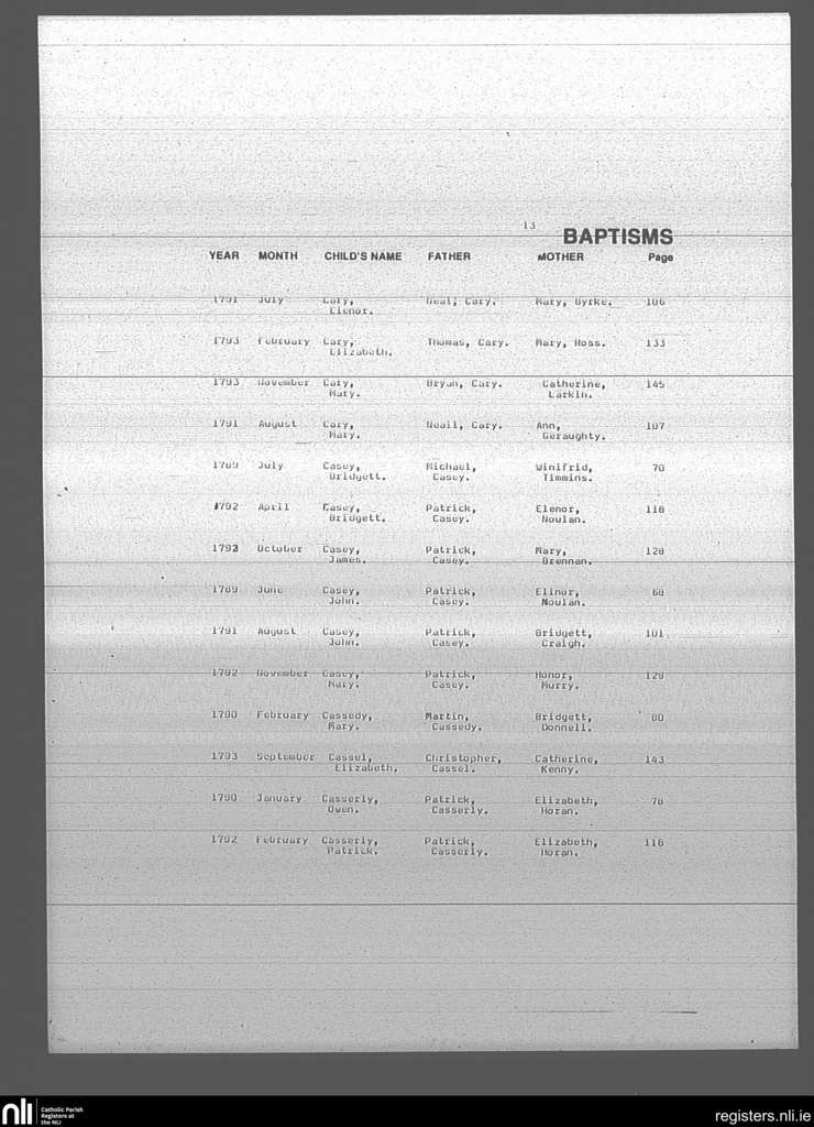 Mullingar; County of Westmeath; Diocese of Meath. Baptisms, June 1789 to Nov. 1793