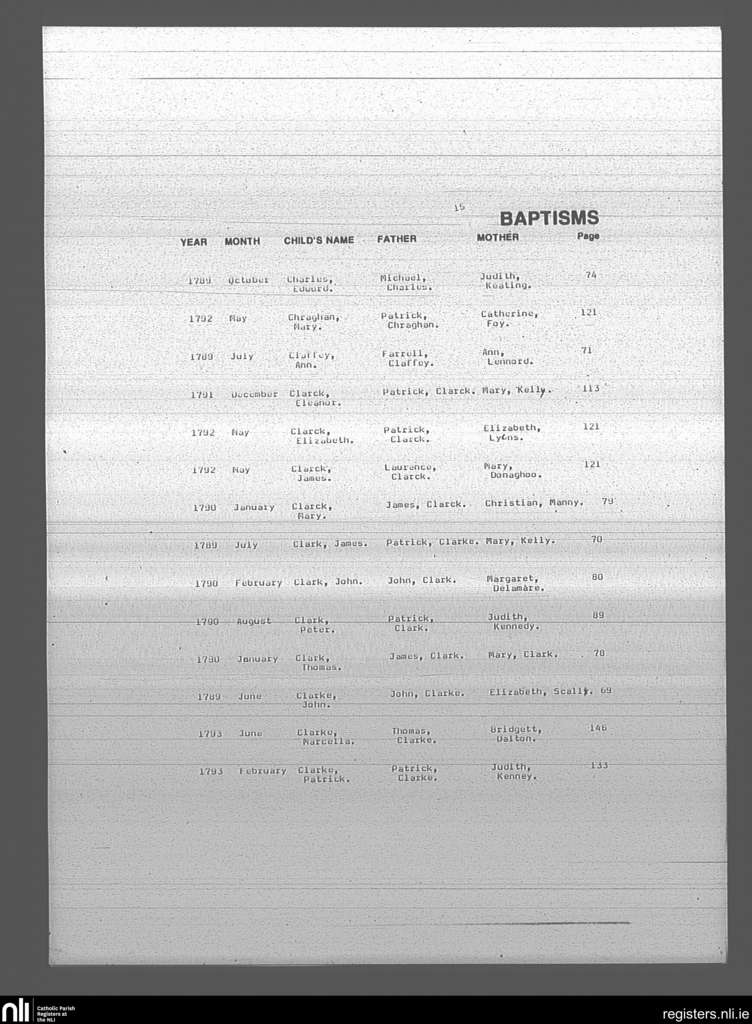 Mullingar; County of Westmeath; Diocese of Meath. Baptisms, June 1789 to June 1793