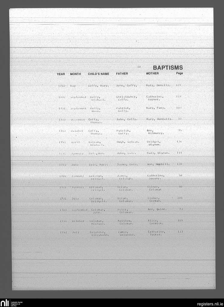 Mullingar; County of Westmeath; Diocese of Meath. Baptisms, Jan. 1789 to June 1793