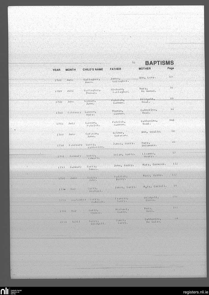 Mullingar; County of Westmeath; Diocese of Meath. Baptisms, Feb. 1789 to July 1793