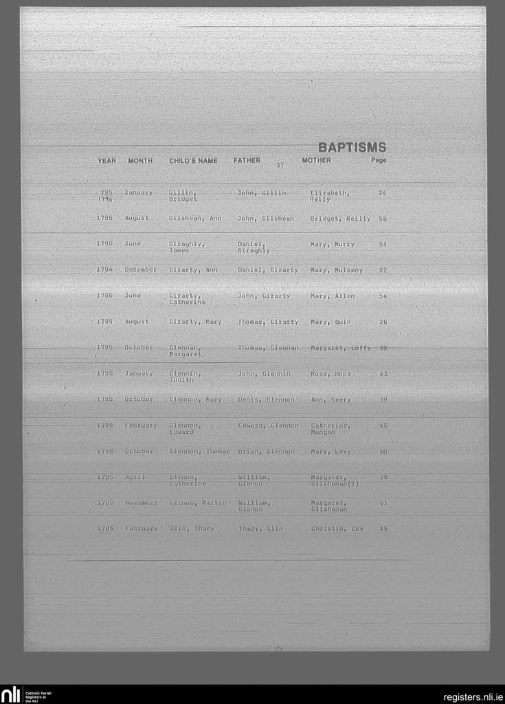 Mullingar; County of Westmeath; Diocese of Meath. Baptisms, Dec. 1794 to Nov. 1796