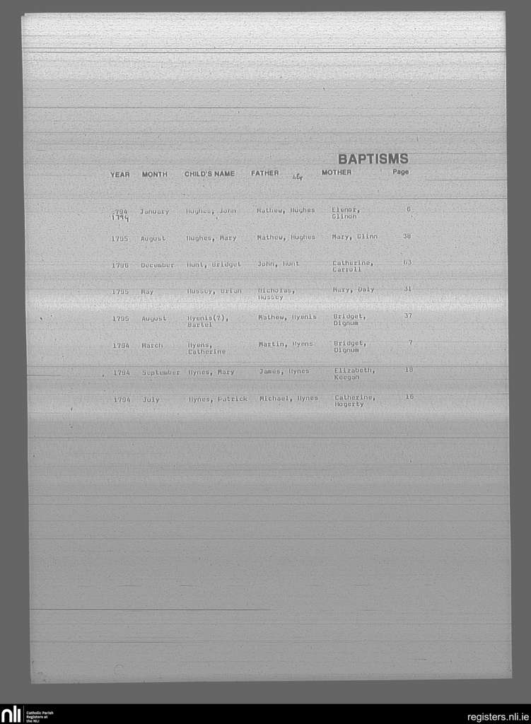Mullingar; County of Westmeath; Diocese of Meath. Baptisms, Jan. 1794 to Dec. 1796