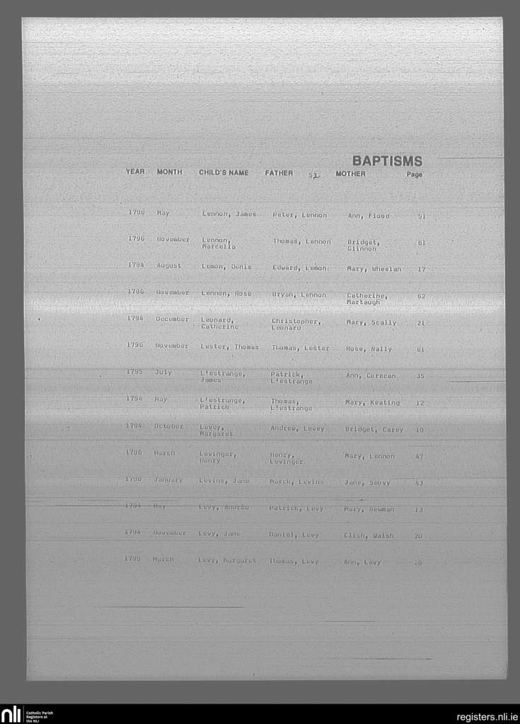 Mullingar; County of Westmeath; Diocese of Meath. Baptisms, May 1794 to Nov. 1796