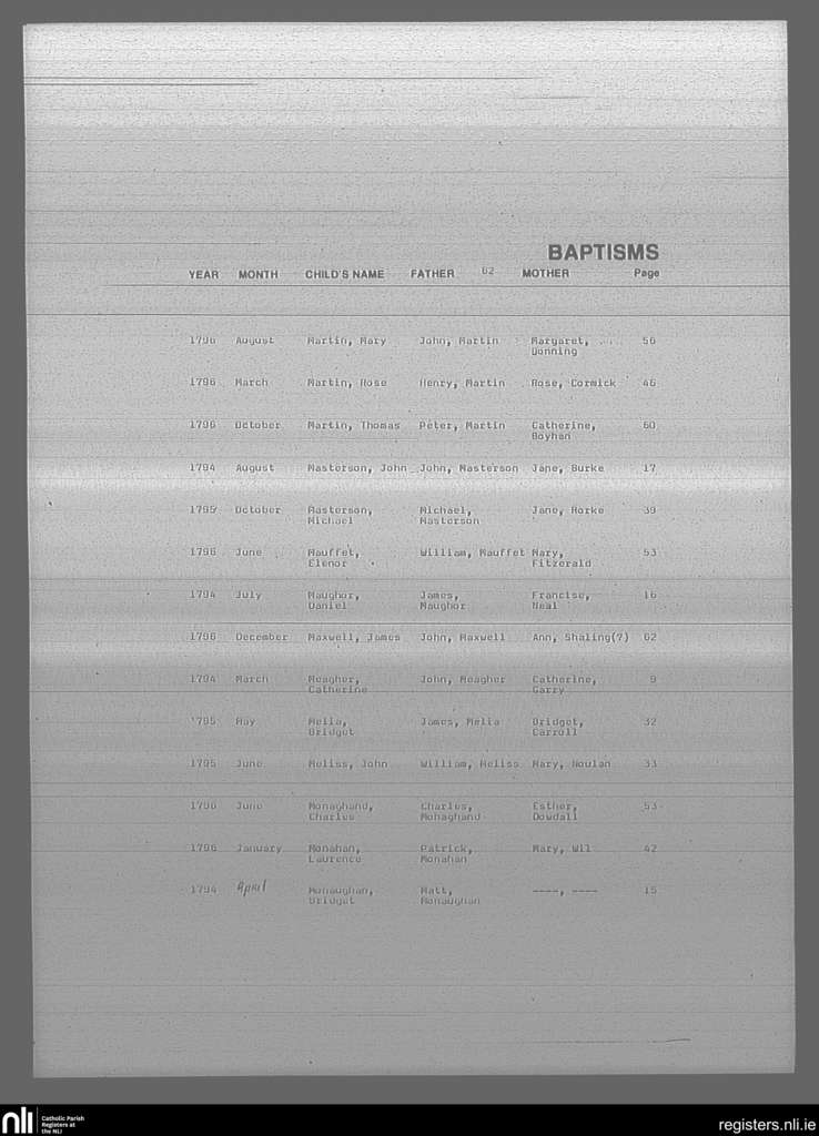 Mullingar; County of Westmeath; Diocese of Meath. Baptisms, Mar. 1794 to Dec. 1796