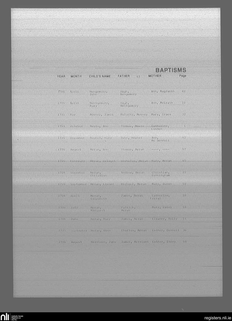 Mullingar; County of Westmeath; Diocese of Meath. Baptisms, Oct. 1793 to Sep. 1796