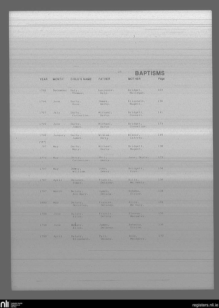 Mullingar; County of Westmeath; Diocese of Meath. Baptisms, Mar. 1797 to May 1800