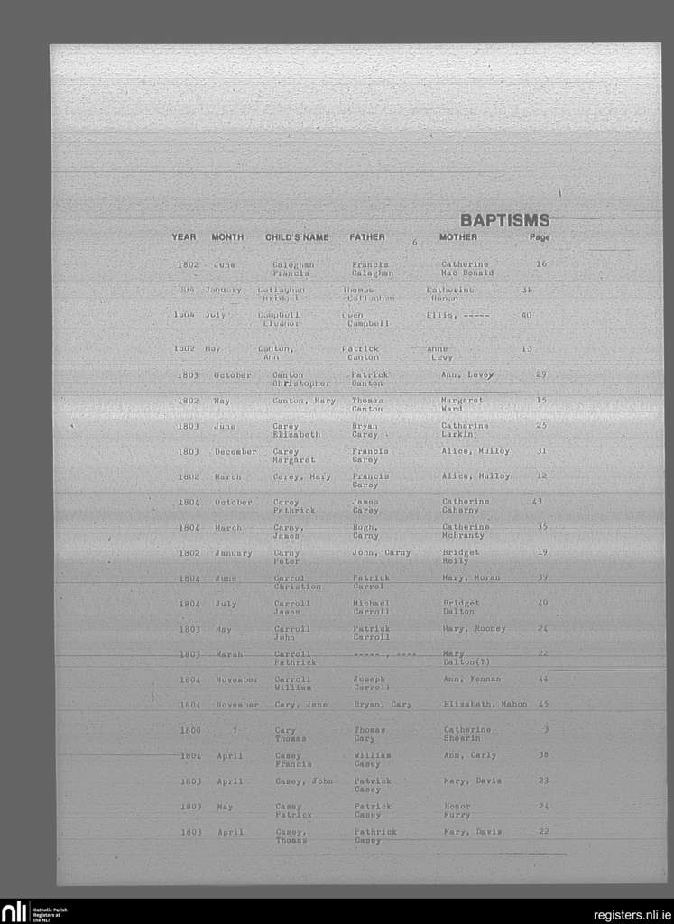 Mullingar; County of Westmeath; Diocese of Meath. Baptisms