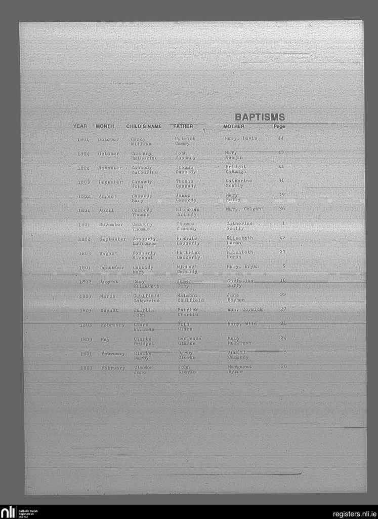 Mullingar; County of Westmeath; Diocese of Meath. Baptisms, Aug. 1800 to Sep. 1804