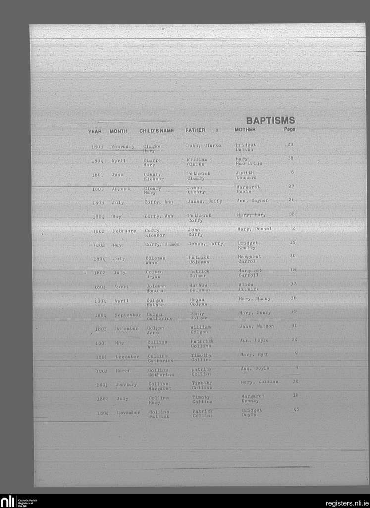 Mullingar; County of Westmeath; Diocese of Meath. Baptisms, Feb. 1801 to Dec. 1804
