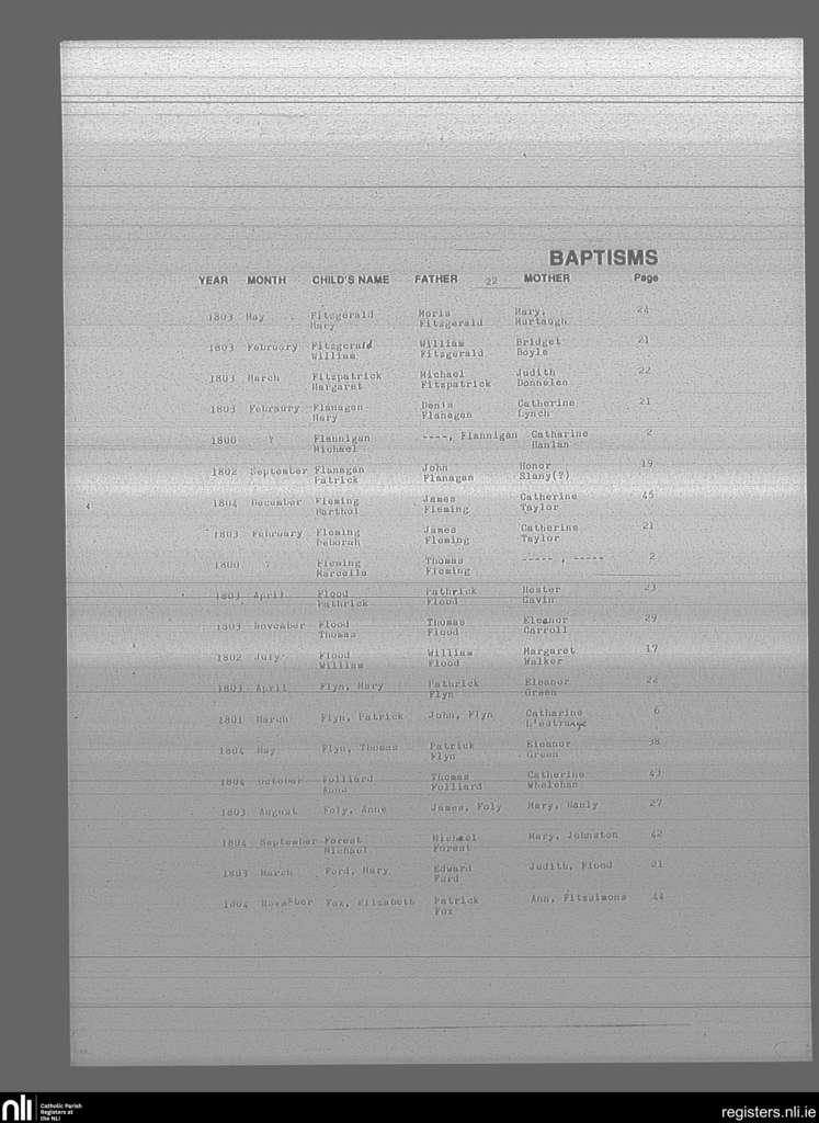 Mullingar; County of Westmeath; Diocese of Meath. Baptisms, Mar. 1800 to Oct. 1804