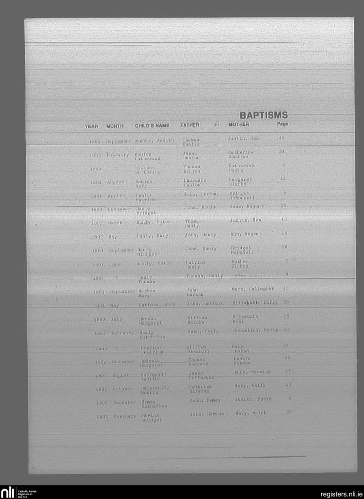 Mullingar; County of Westmeath; Diocese of Meath. Baptisms, Feb. 1800 to Nov. 1804