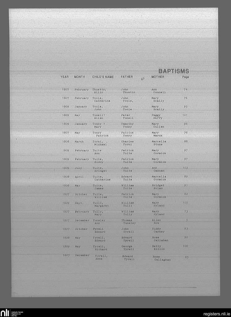 Mullingar; County of Westmeath; Diocese of Meath. Baptisms, Feb. 1807 to Sep. 1809
